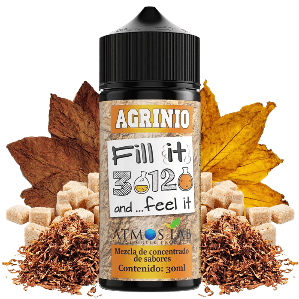 Con este Aroma Atmos Lab Agrinio podremos tener al alcance de nuestra mano un auténtico aroma tabaquil que combina a la perfección tabaco Virginia con sutiles notas dulces.