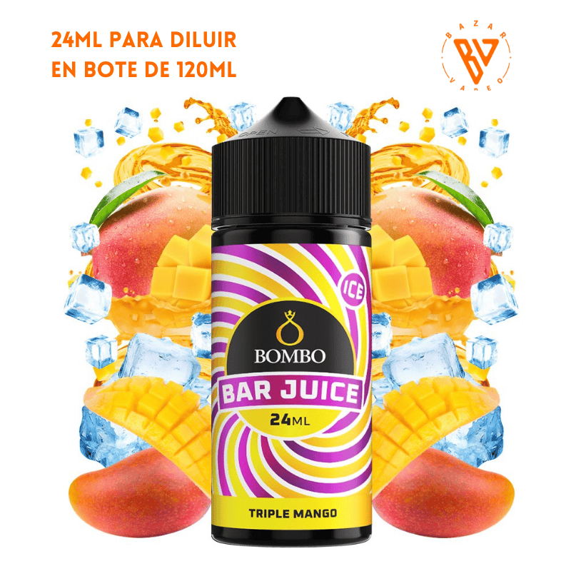 El Aroma Bombo Bar Juice Triple Mango Ice 24ml ofrece una experiencia tropical intensa, con un sabor profundo a mango jugoso combinado con un toque helado.