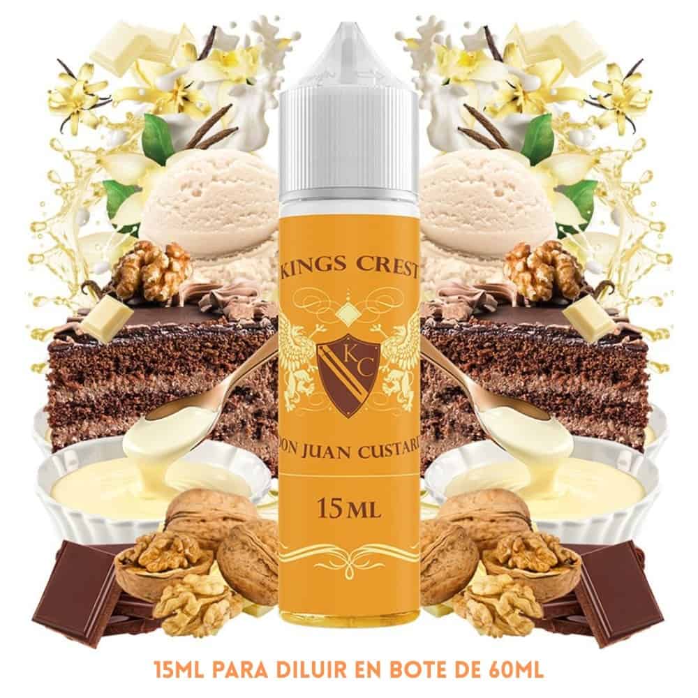 El Aroma Don Juan Custard Longfill de Kings Crest nos va a permitir hacernos un delicioso líquido vaper con sabor a tarta de chocolatenuecescrema y….¡unas dulces natillas de vainilla! Redescubre el sabor del Don Juan con esta nueva incorporación de las natillas, ¡es una delicia!