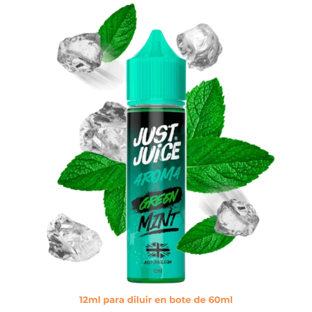Unas hojas de menta verde frescas y unos cubitos de hielo te están esperando en este nuevo Aroma Just Juice Mint Range Green Longfill 12ml, ¡hazte el mejor líquido mentolado!
