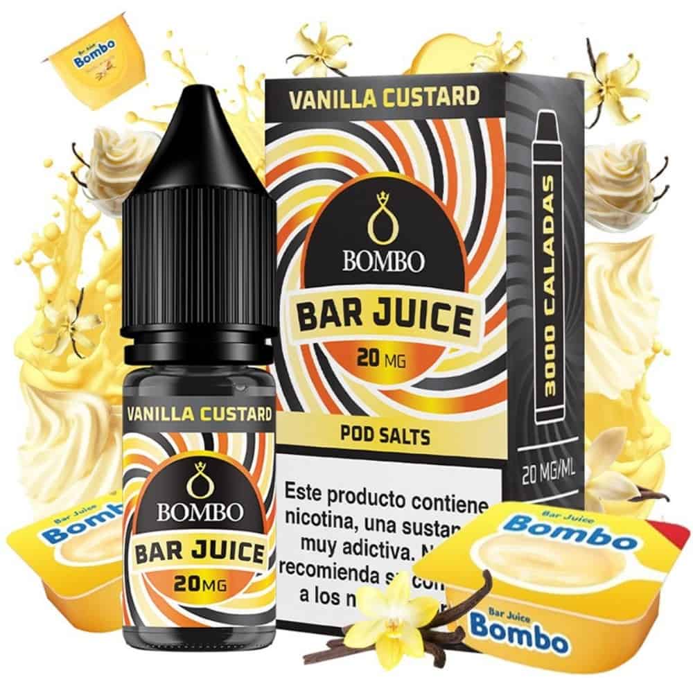 Bombo Salts añade a su catálogo de Bar Juice unos increíbles sabores de postres como este Vanilla Custard. Con este sabor Bombo podremos disfrutar de unas cremosas natillas de vainilla.
