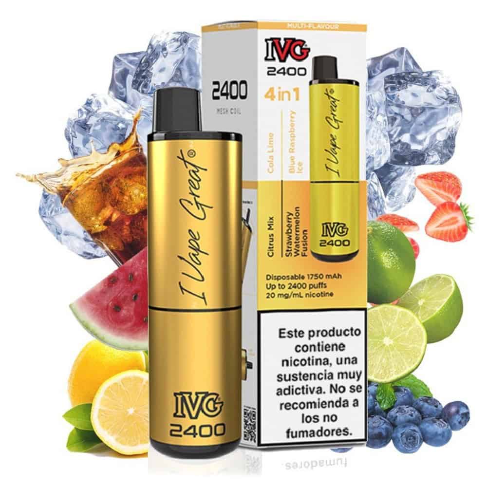 IVG 2400 Summer Edition 4 en 1 es lo mejor que hemos visto en mucho tiempo en el mundo de los vapers desechables. Cuenta con 4 sabores refrescantes ideales para los días de verano, y son: Cola Lime, Strawberry Watermelon Fusion, Blue Raspberry Ice y Citrus Mix.
